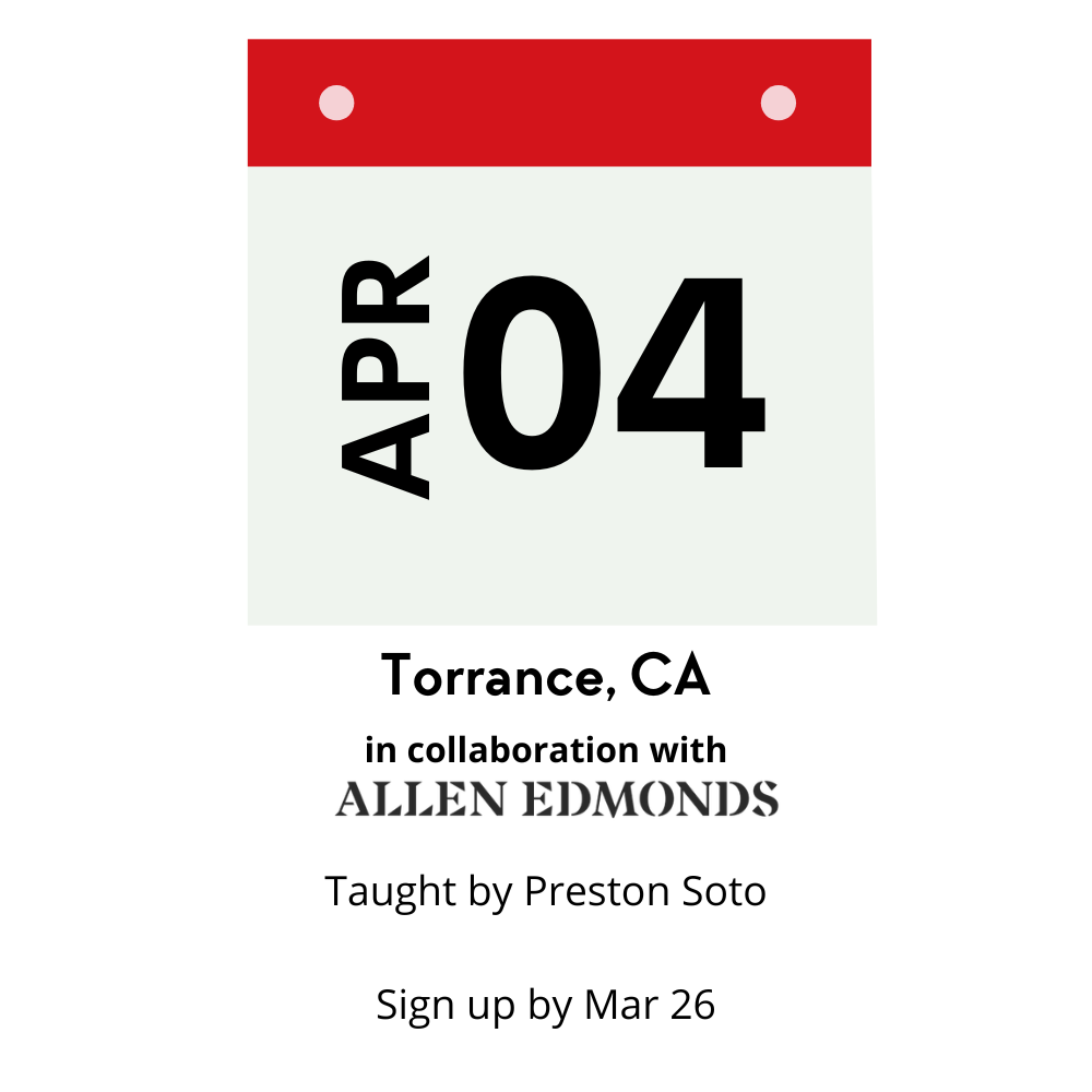 Through his exceptional work on Instagram and his engaging content, Levi has quickly earned a reputation as one of the top Shoe Shine experts in the industry.Don’t miss this opportunity to meet him in person, pick up valuable techniques, and, of course, see firsthand how he brings shoes to a mirror-like gleam.